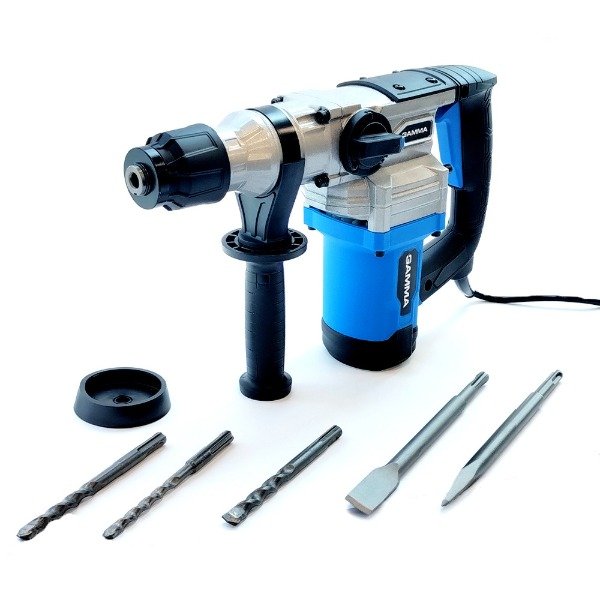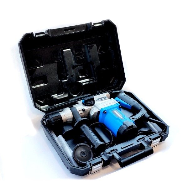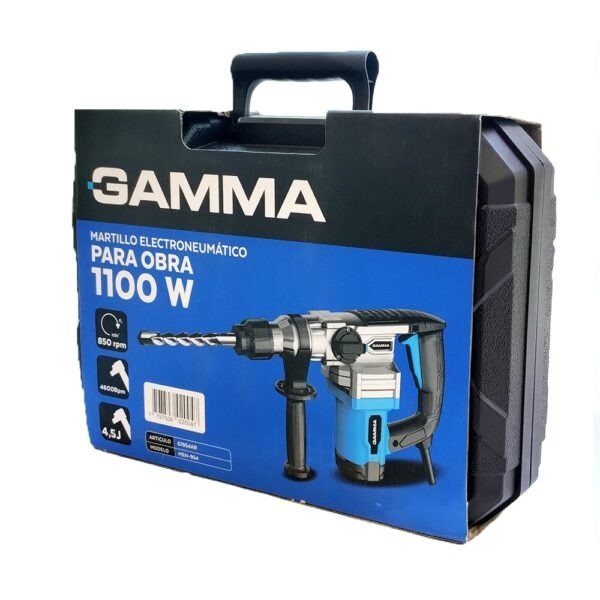 Martillo electroneumático de 1100 W, ideal para perforación y demolición en concreto, con capacidad de perforación de 28 mm y sistema de encastre SDS-PLUS.